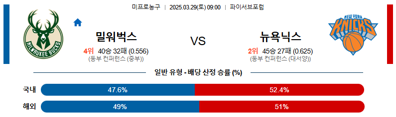 【NBA 프로농구】 03월 29일 밀워키 vs 뉴욕닉스