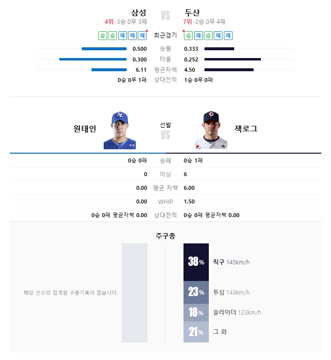 • 예상 스코어: 삼성 5 : 두산 3