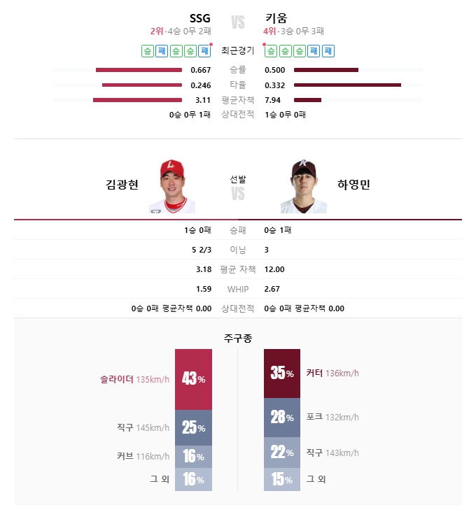 SSG는 김광현이라는 확실한 카드로 주도권을 쥘 수 있는 경기.