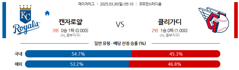 03월 30일 MLB 캔자스시티 클리블랜드 MLB분석