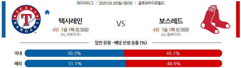 03월 30일 MLB 텍사스 보스턴 분석