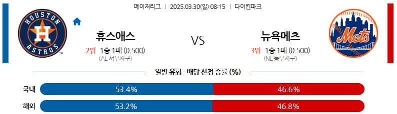 03월 30일 MLB 휴스턴 뉴욕메츠 분석