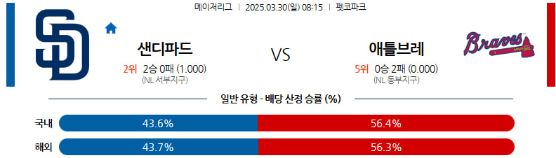 03월 30일 MLB 샌디에이고 애틀랜타 분석
