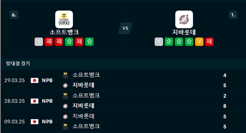 3월30일 일본야구NPB) 소프트뱅 VS 지바롯데 [분석,추천]