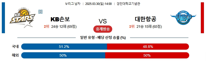 # 홈팀 : KB손해보험(24승12패, 정규시즌 2위)