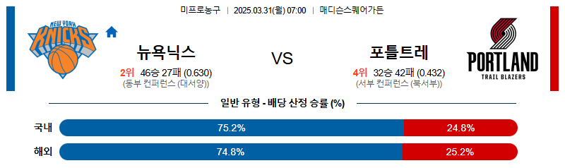 【NBA 프로농구】 03월 31일 뉴욕닉스 vs 포틀랜드