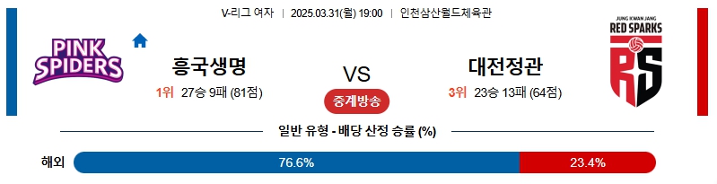 【V-리그 여자】03월31일 흥국생명 vs 정관장