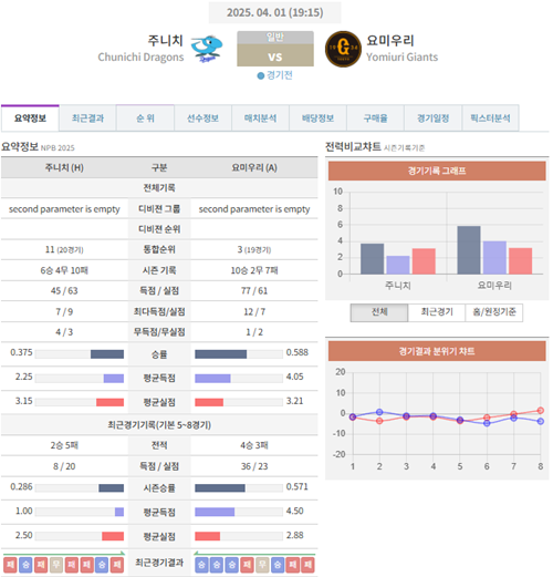 4월01일 일본야구(NPB) 주니치 VS 요미우리 [분석,추천]