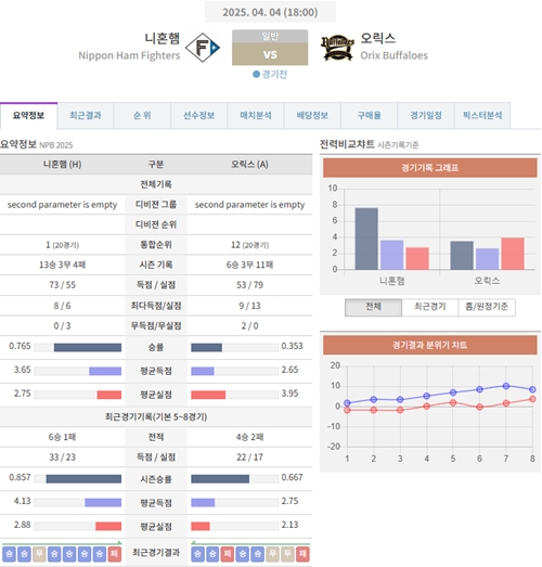 4월 4일 일본야구(NPB) 니혼햄 VS 오릭스 [분석,추천]