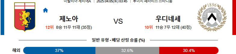 【이탈리아 세리아A】04월05일 제노아 CFC vs 우디네세 칼초