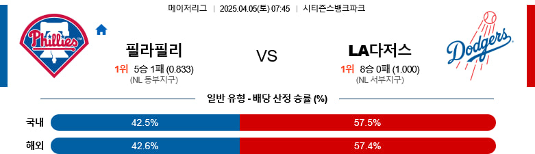 【MLB메이저리그】 04월05일 필라델피아 vs LA다저스