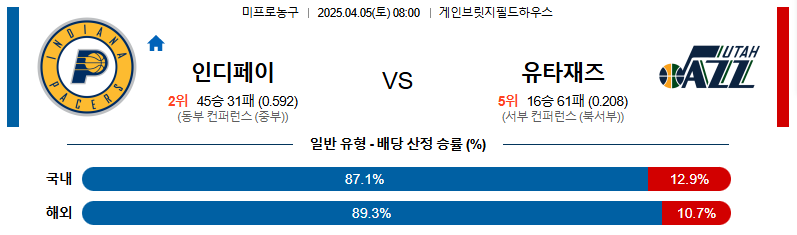 # 홈팀 : 인디애나 페이서스(45승31패)
