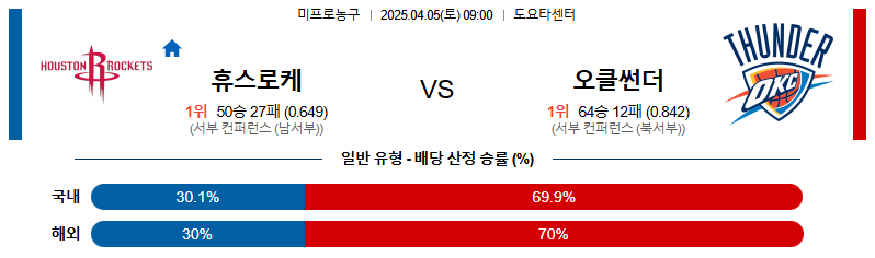 【NBA 프로농구】 04월 05일 휴스턴 vs 오클라호마