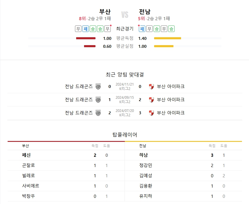 04.05 [K리그] 부산 VS 전남 분석 및 프리뷰 !