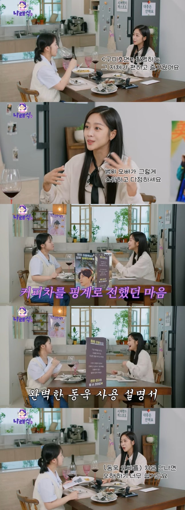 박나래가 조보아가 이동욱의 커피차에 쓴 멘트를 읽고 "사용 설명서네"라고 하자 조보아는 "(이동욱을) 처음 만났을 때는 오해하기 쉽다. '왜 저렇게 까칠하지? 화났나 나한테?' 이렇게 생각할 수 있다. 근데 그게 오빠의 애정 표현이다. 한 1년은 만나야지 안다"고 덧붙여 눈길을 끌었다.