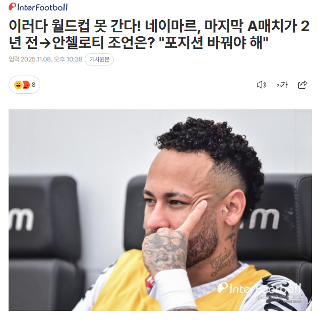 한때 브라질 축구를 상징하는 선수였던 네이마르는 2023년 10월 우루과이와의 경기 중 무릎 십자인대 부상으로 대표팀과 거리를 두게 됐다. 이후 그는 고향팀 산투스에서 컨디션을 조율하고 있지만, 여전히 국가대표로 복귀하지 못한 상황이다. 이에 따라 일부에서는 네이마르가 2026 북중미 월드컵에 출전하지 못할 가능성을 점치고 있다.