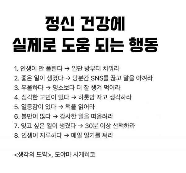 정신건강에 좋은 것