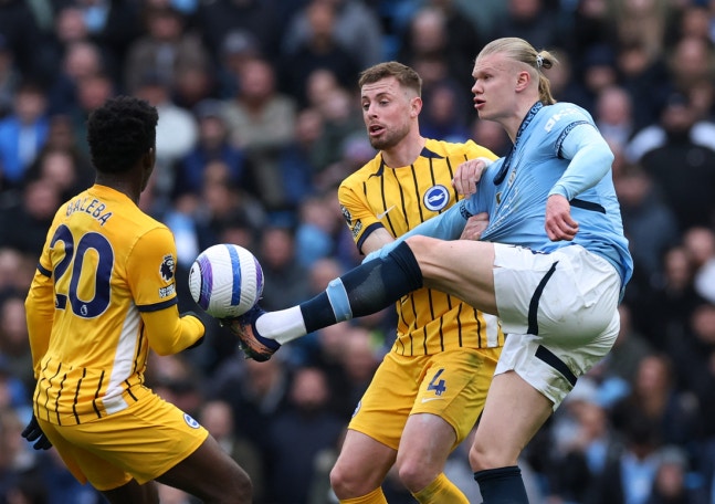 ‘괴물’ 홀란 미쳤다! EPL 94경기 만에 ‘100개’ 공격 포인트 달성!···맨시티, 브라이턴과 2-2 무→4위 탈환 실패…