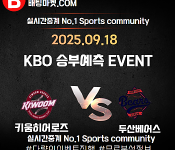 25.09.18 [ KBO ] 두산베어스 VS 키움히어로즈 ★ 승/패+언더/오버 승부예측 이벤트 !