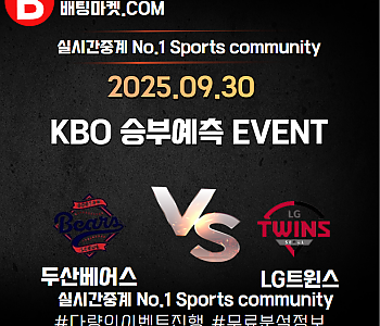 ★ 09월 20일[KBO] LG트윈스 VS 삼성라이온즈 승/패★ 09월 20일 [KBO] LG트윈스 VS 삼성라이온즈언더/오버★총 상금5,300P★승패/언더오버 를 정확히 맞춰주신…
