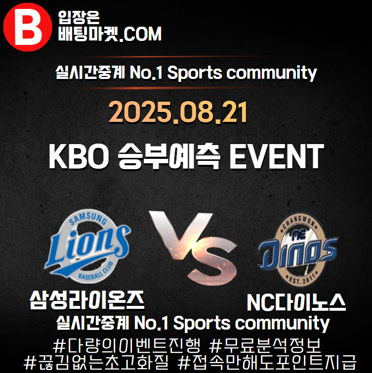 25.08.21 [ KBO ] 삼성라이온즈 VS KT위즈 ★ 승/패+언더/오버 승부예측 이벤트 !