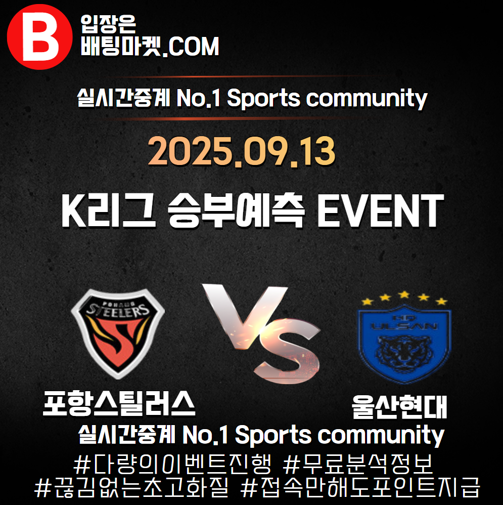 25.09.13 [ K리그 ] 포항스틸러스 VS 울산현대 ★ 승/패+언더/오버 승부예측 이벤트 !