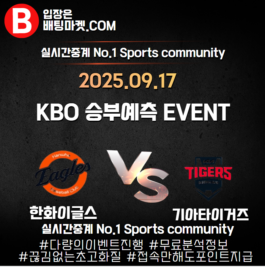 25.09.17 [ KBO ] 한화이글스 VS 기아타이거즈 ★ 승/패+언더/오버 승부예측 이벤트 !
