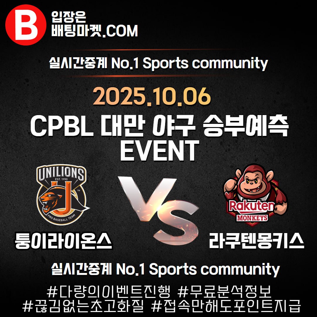 25.10.06 [ CPBL ] 퉁이라온스 VS 라쿠몽키스 ★ 승/패+언더/오버 승부예측 이벤트 !