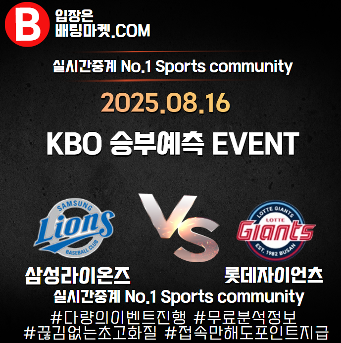 25.08.16 [ KBO ] 롯데자이언츠 VS 삼성라이온즈 ★ 승/패+언더/오버 승부예측 이벤트 !