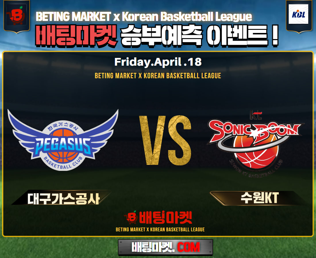 25.04.18 [ KBL ] 대구가스공사 VS 수원KT ★ 승/패+언더/오버 승부예측 이벤트 !