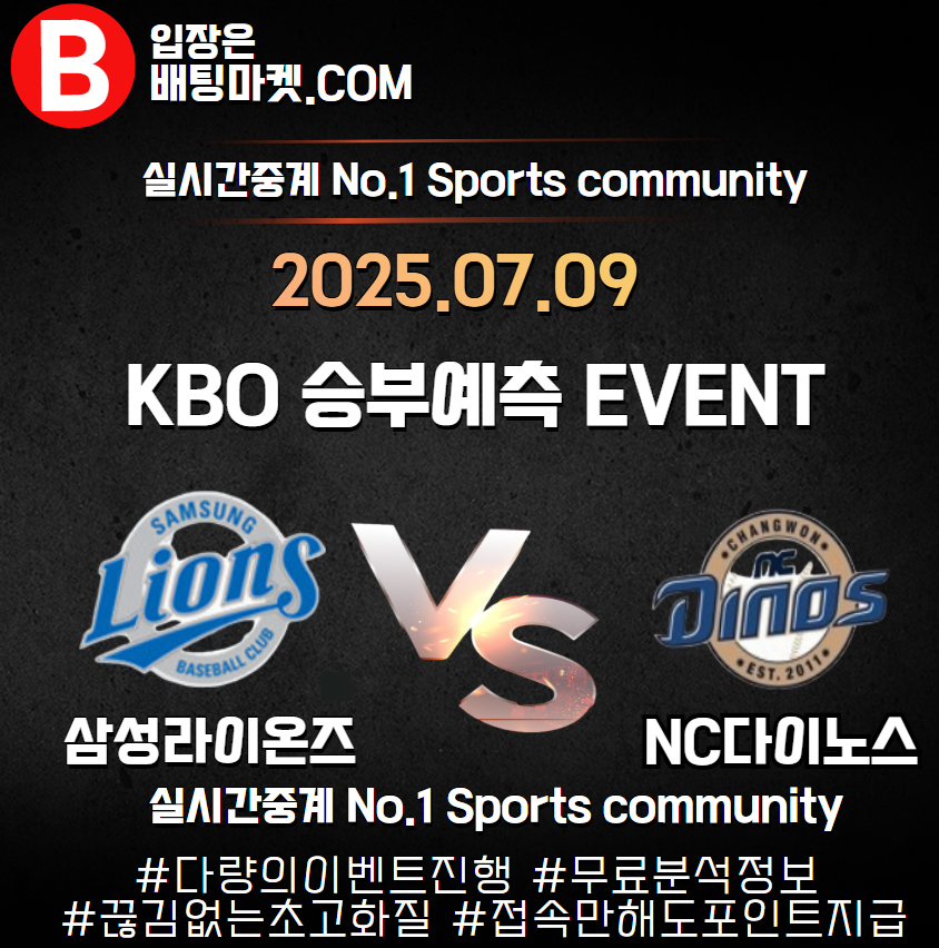 25.07.09 [ KBO ] NC다이노스 VS 삼성라이온 ★ 승/패+언더/오버 승부예측 이벤트 !
