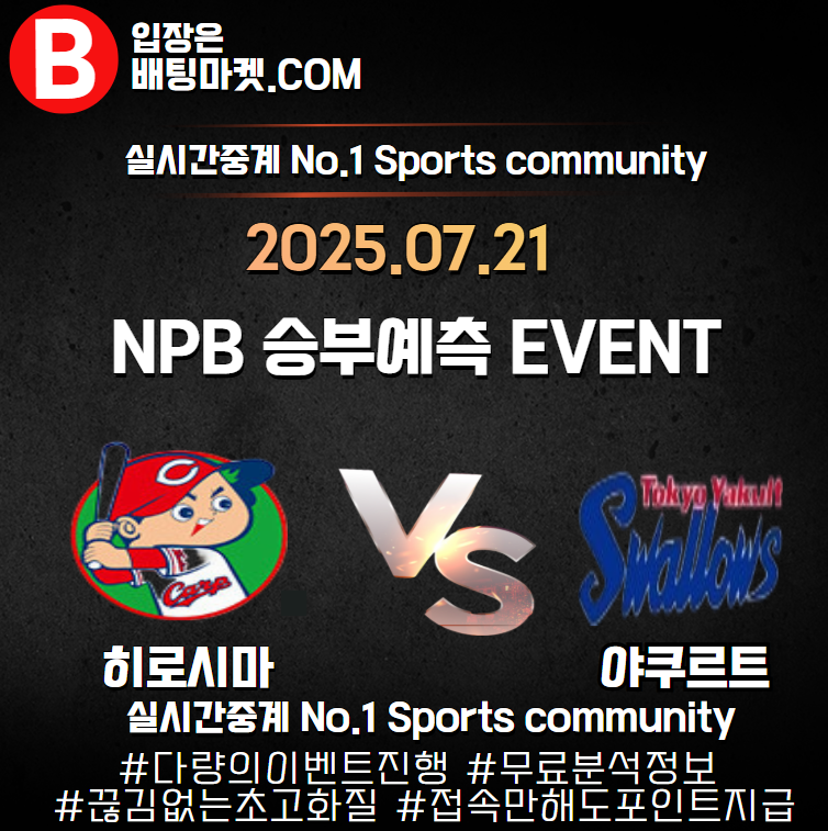 25.07.21 [ NPB ] 야쿠르트 VS 히로시마 ★ 승/패+언더/오버 승부예측 이벤트 !