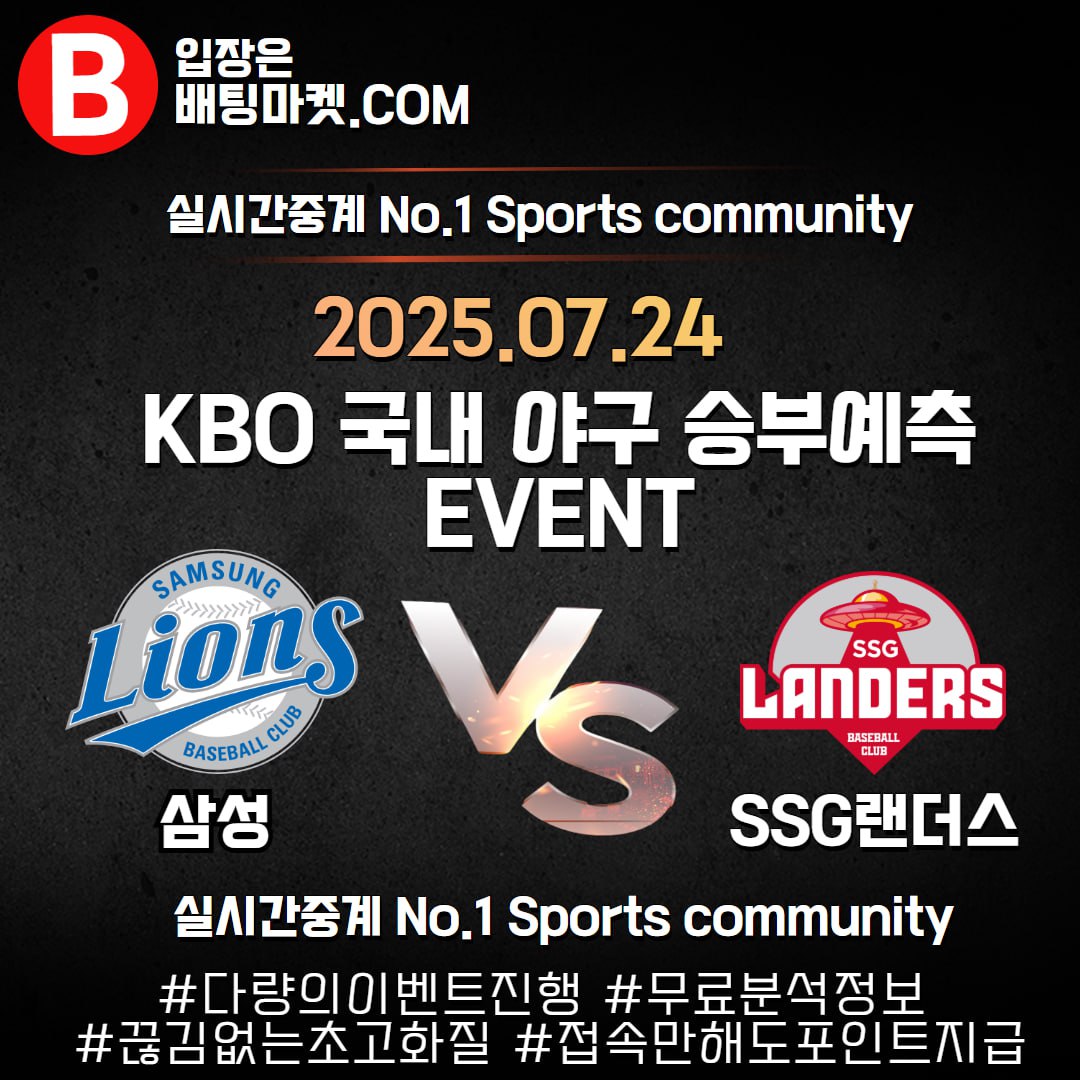 25.07.24 [ KBO ] 삼성 VS SSG랜더스 ★ 승/패+언더/오버 승부예측 이벤트 !