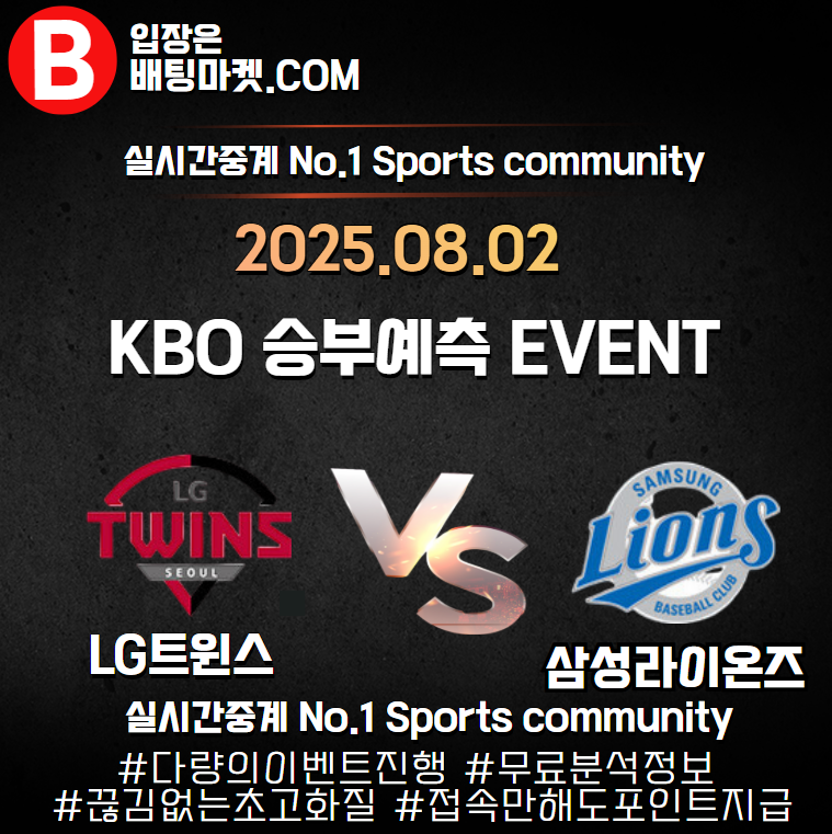 25.08.02 [ KBO ] 삼성라이온즈 VS LG트윈스 ★ 승/패+언더/오버 승부예측 이벤트 !