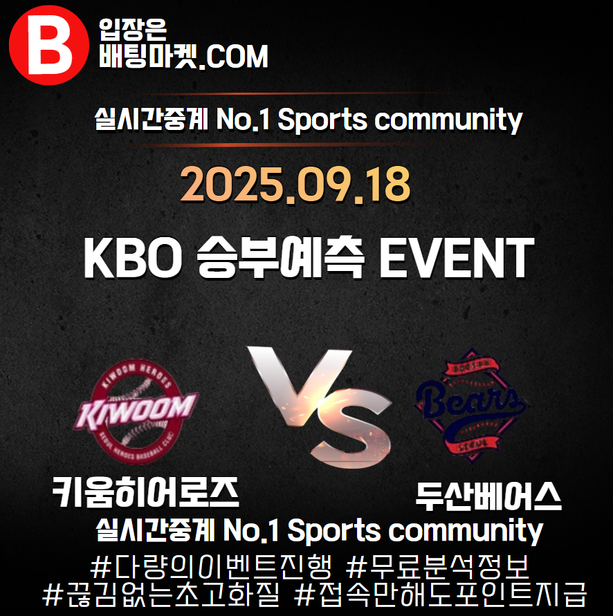 25.09.18 [ KBO ] 두산베어스 VS 키움히어로즈 ★ 승/패+언더/오버 승부예측 이벤트 !