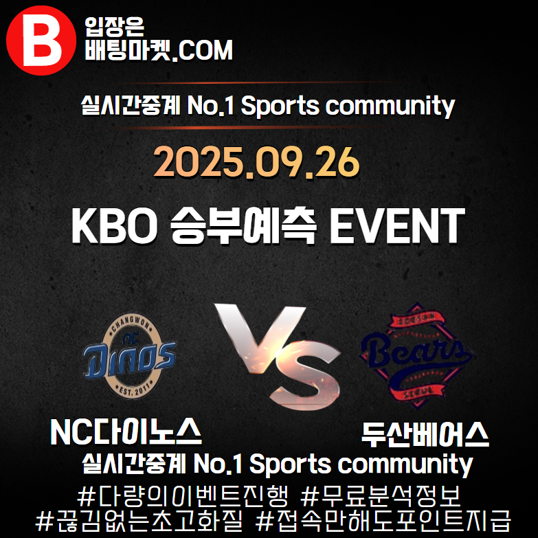 25.09.26[ KBO] 두산베어스 VS NC다이노스 ★ 승/패+언더/오버 승부예측 이벤트 !