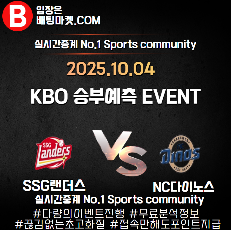 25.10.04 [ KBO ] NC다이노스 VS SSG랜더스 ★ 승/패+언더/오버 승부예측 이벤트 !