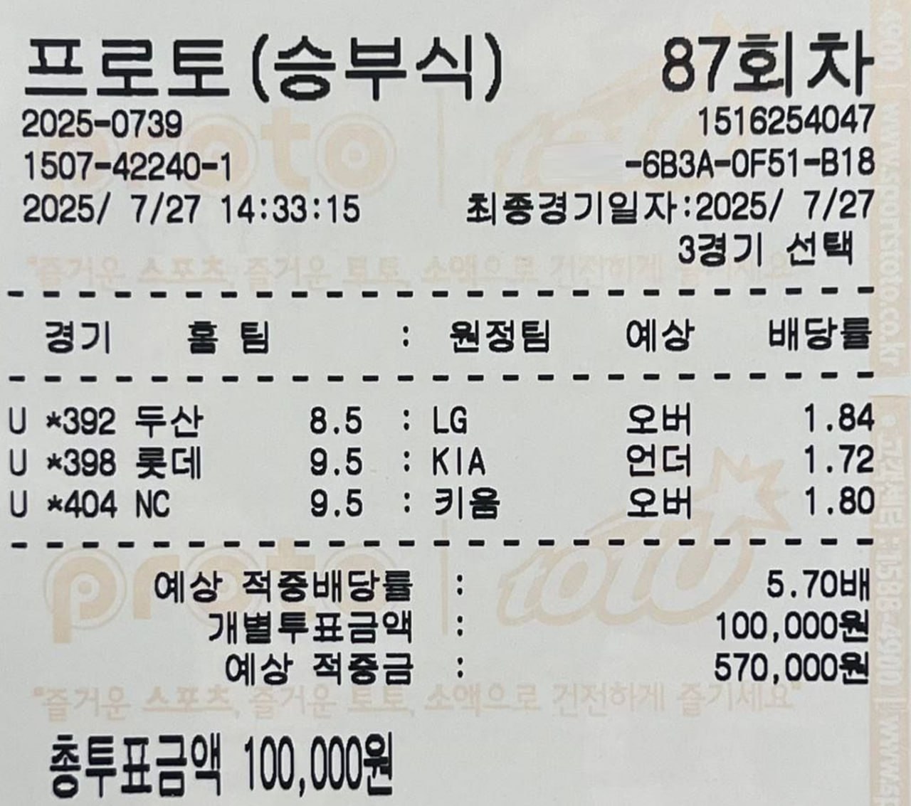 소액 당첨샷~