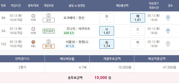 05월 13일 베트맨 57회차 저배당2장 고배당1장 !!