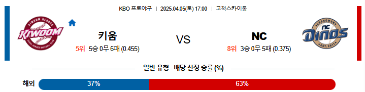 04월 5일 KBO 키움 : NC KBO분석