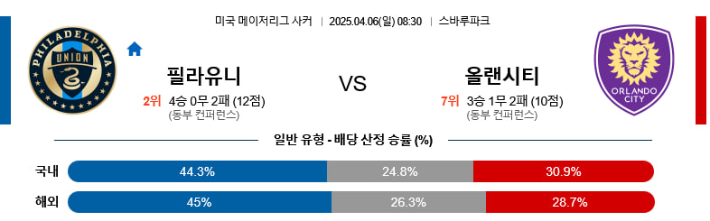 04/06(일) 필라델피아유니언vs올랜도시티 메이저리그사커 분석