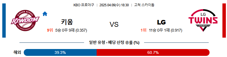 04월 9일 KBO 키움: LG KBO분석