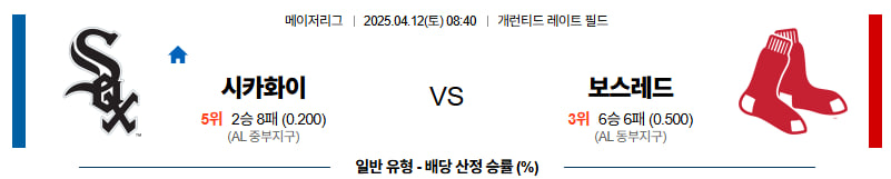 4월12일 MLB (시카고화이트삭스 vs 보스턴) 프로토 경기분석자료