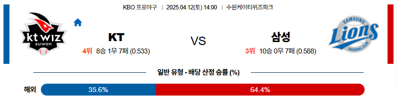 04월 12일 KBO KT: 삼성 KBO분석