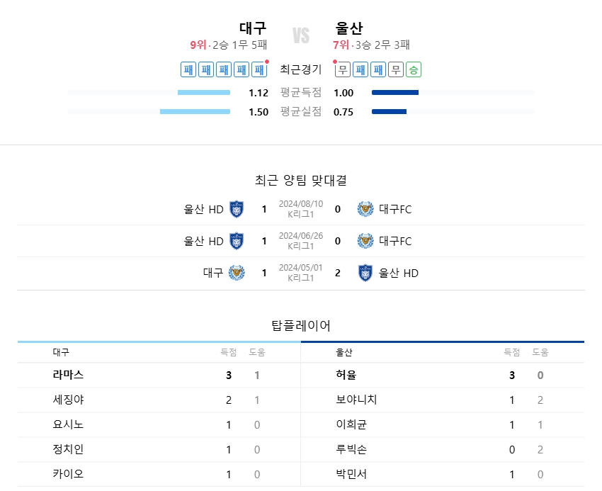 04.13 [K리그] 대구 VS 울산 분석 및 프리뷰 !