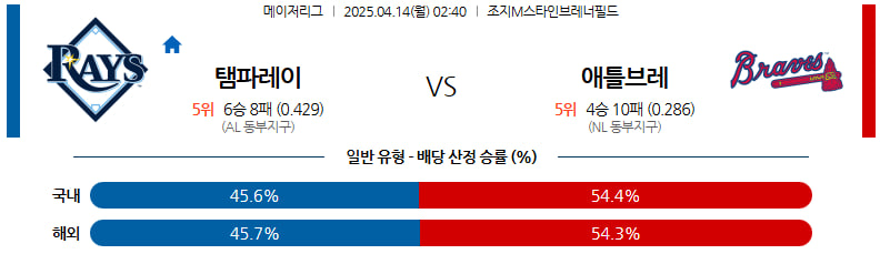 04월 14일 MLB 탬파베이 애틀랜타 분석