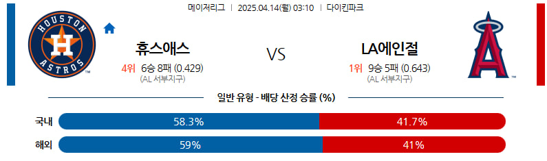 04월 14일 MLB 휴스턴 LA에인절스 분석