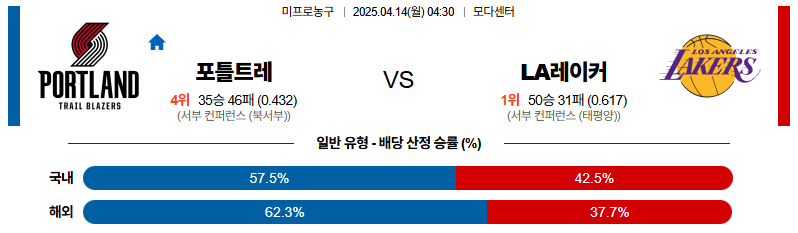 【NBA 프로농구】04월 14일 포틀랜드 vs LA레이커스