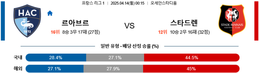【프랑스 리그】04월13일 르아브르ACvs스타드렌