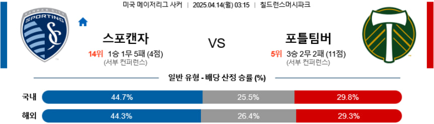 【미국 메이저 리】04월13일스포팅캔자스시티vs포틀랜드팀버스